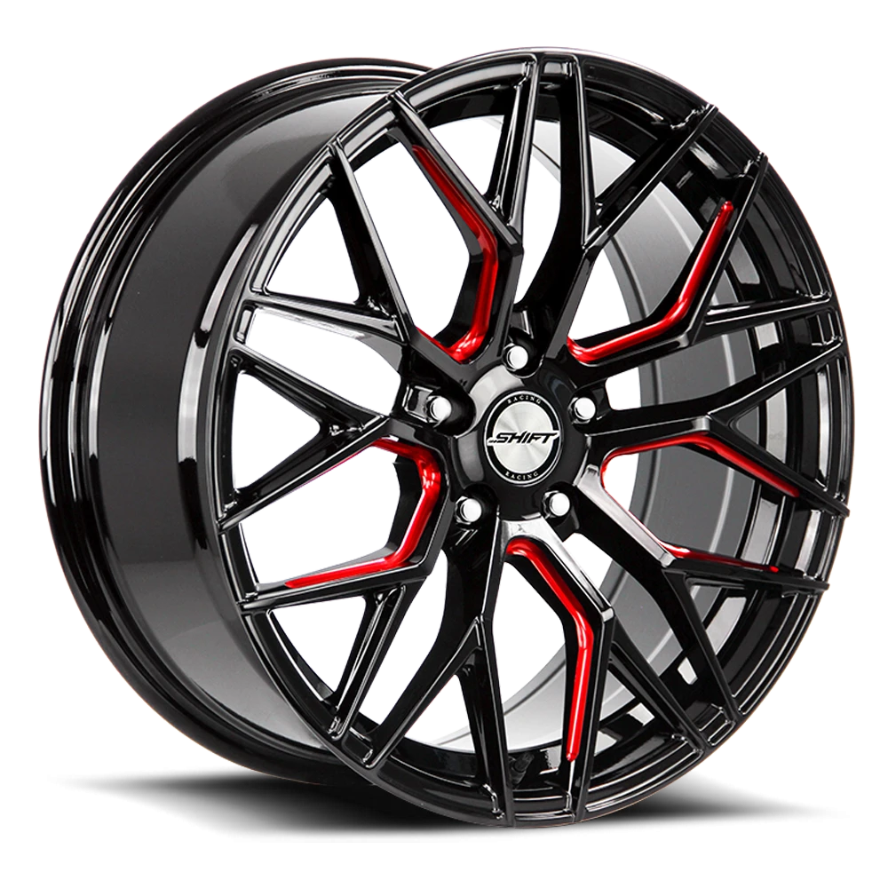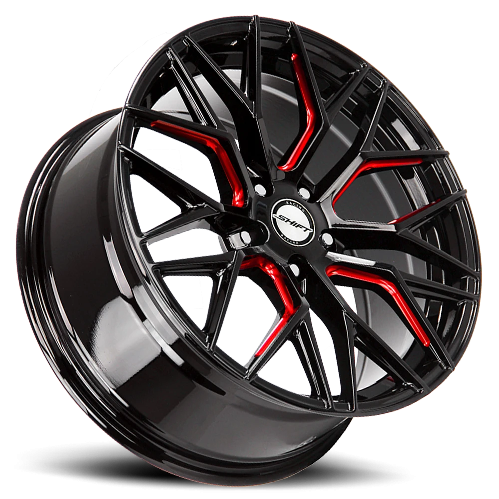 SHIFT H33 Spring Wheel - 18x8 Gloss Black w/ Candy Red Milled Rim (5x120 Bolt Pattern, +35mm Offset, 73.1mm Hub)